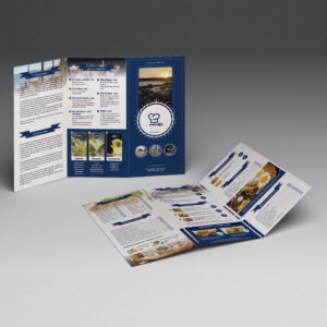 Cartas para Restaurantes tamaño A3 (42×29,7 Cm) con 4 caras impresas a todo color en cartulina de 300g. brillo o mate a elegir, laminadas brillo o mate a elegir y acabado plegadas en díptico